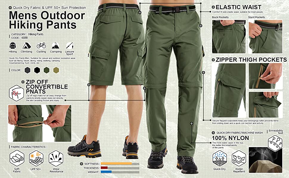 Amazon Com Mens Hiking Pants Convertible Quick Dry Zip Off Upf Lightweight Fishing Travel Camping Safari Pants Army Green 29 Clothing