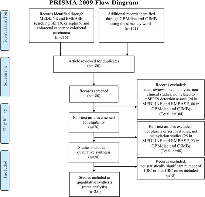 The Performance Of The Sept9 Gene Methylation Assay And A Comparison With Other Crc Screening Tests A Meta Analysis Scientific Reports